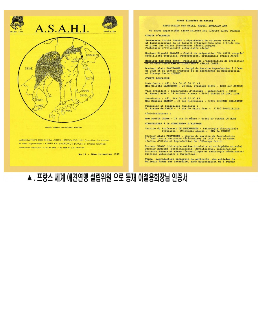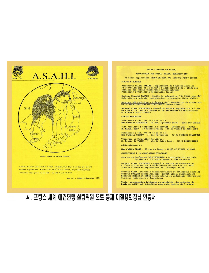프랑스 세계애견연맹 설립위원 공식등재 이철용회장 페이지 정보 작성자 진도견… 작성일25-10-26 14:13 조회15회 댓글0건 관련링크 이전글 다음글 목록 답변 본문 한국의 대표 이철용회장이 진도개 대표로 설립위원으로 공식 등록된 사실을 증명하는 문서임 이전글 다음글 목록 답변
